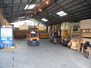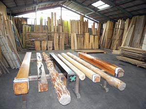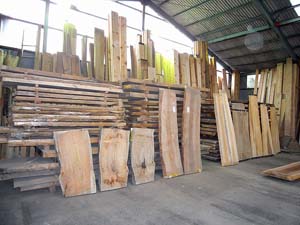 屋根のかかった雨の心配の要らない大きなプレハブ小屋が3つあり、1つを作業場用、2つを保管場所に利用しています。銘木や家具材等の素晴らしい材木もここで陽の目を見るのを待っております。普通の材木屋さんより銘木を取り揃えている住ま居るのアトリエは木の香りに溢れていますので、機会がありましたらお立ち寄り下さい。