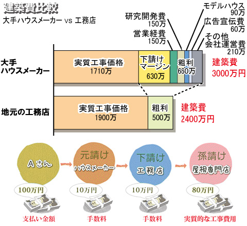 Premium住宅は全てお客様のオーダーによるフルカスタム住宅です。つまり大量仕入れ大量施工が意味をなさず、大手とは真逆の家づくりです。フルオーダーのPremium住宅で採用される設備機器、たとえば100万円のシステムキッチンが大量仕入れしたからといって、50万円にはなりません。せいぜいが90万円です。それなら大量仕入れするより、都度都度お客様の嗜好に合わせて仕入れたほうが満足度が高まります。